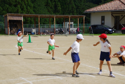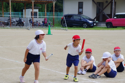 園児・小学生全員が走るリレーです。