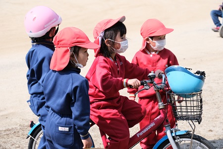 今日は、乗り物で追いかけ合ったりしながら、運動場を走り回っていました。