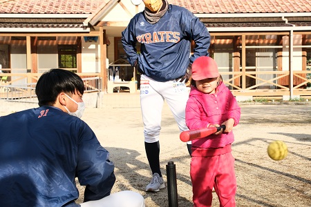園児たちにボールの投げ方やバットの振り方を、教えてくださいました。